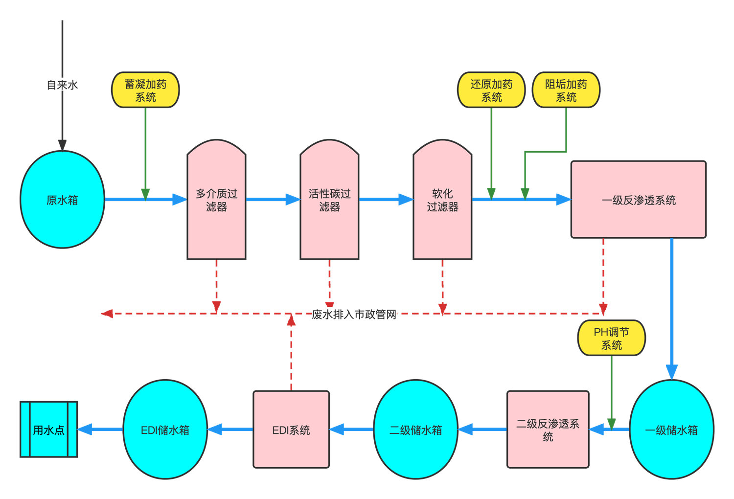 4.過程易實現自動控制,產水水質穩定,與RO等水處理技術相結合,能形成完善的純水、超純水生產線。